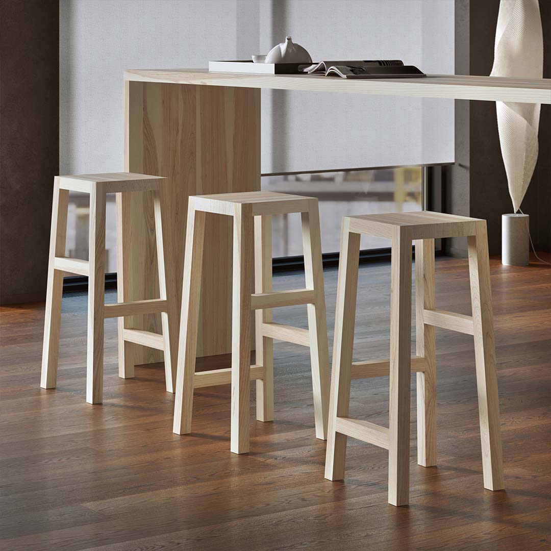 TANTUM- Barhocker mit Stufen in verschiedener Höhe. Die schlanke Form der vier leicht nach außen gestellten Beine sorgt für Stabilität gepaart mit einem komfortablem Sitzgefühl. Die Stufen in verschiedener Höhe bieten ein flexibles und elegantes Sitzen. Ein stillvoller Barhocker der den Raum aufwertet. Ideal für Menschen aller Körpergrößen und Kinder, um eine bequeme Sitzgelegenheit zu finden.