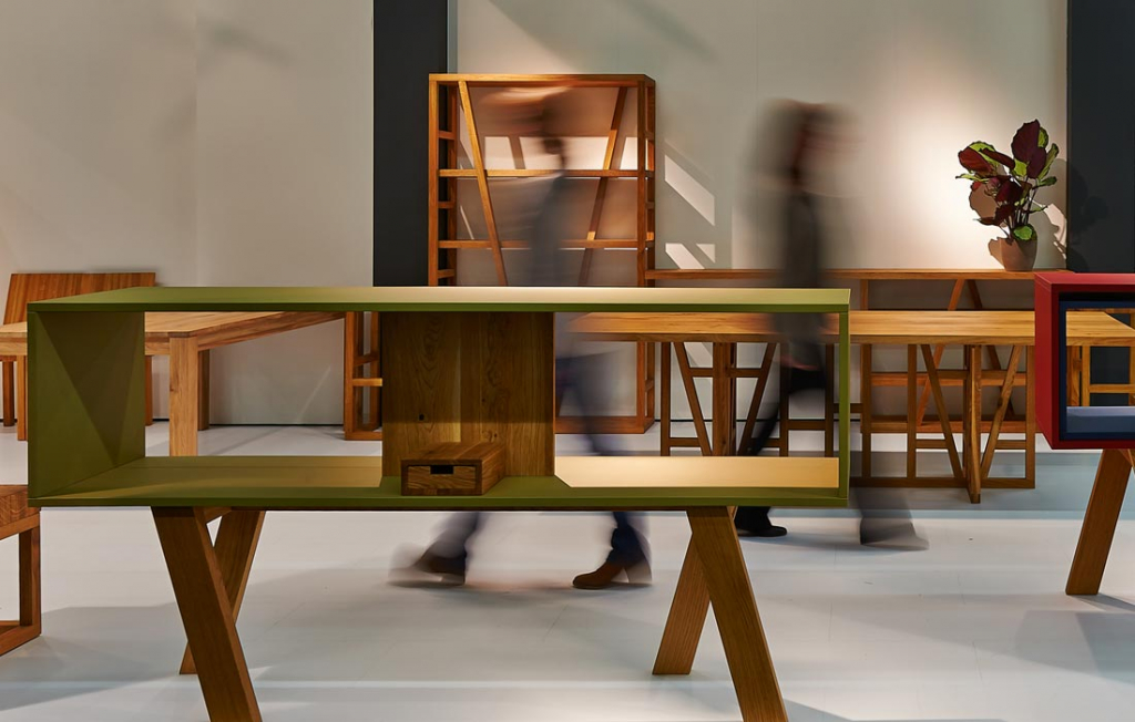 Shelf GO: the nature-boy with slanting legs and colored accents from linoleum.