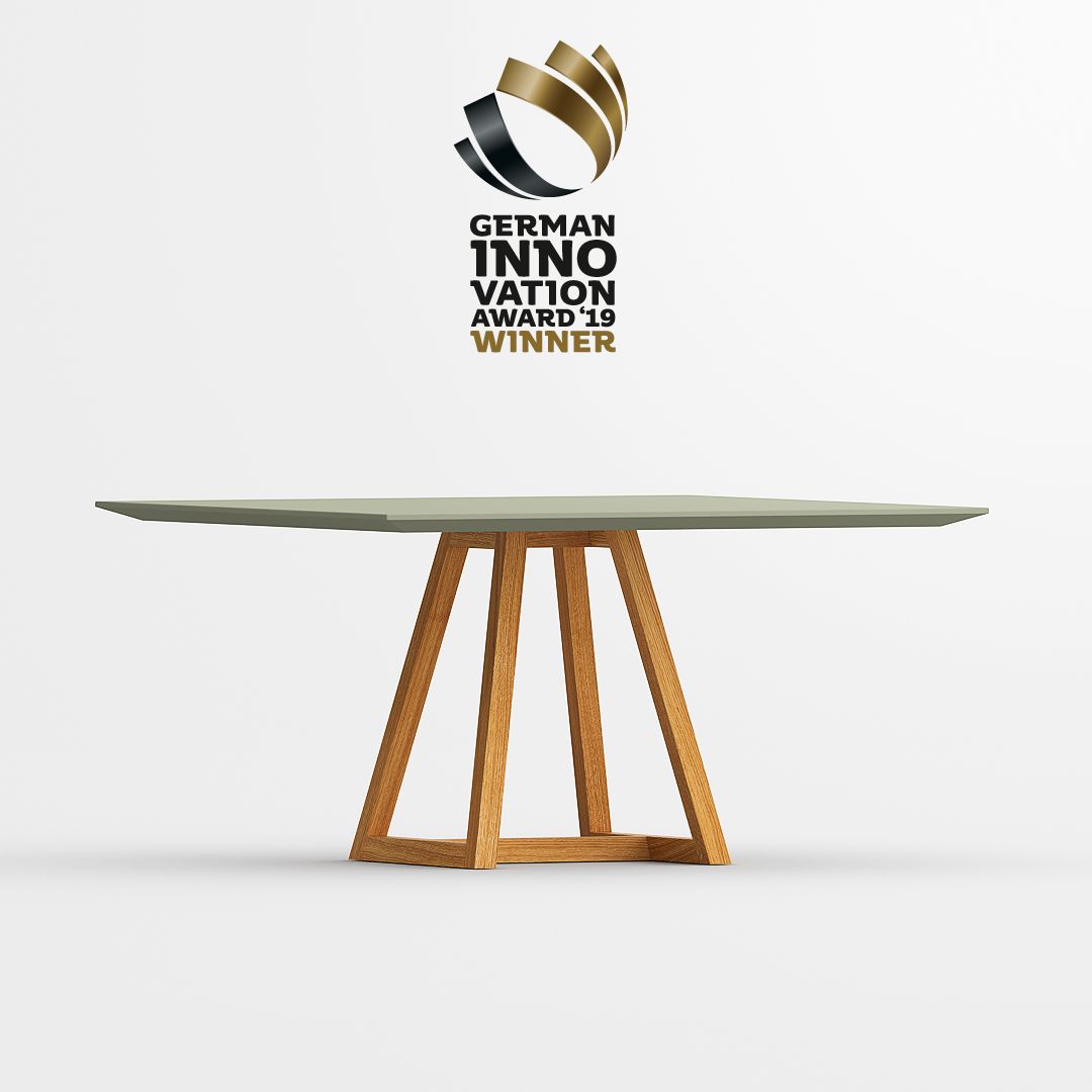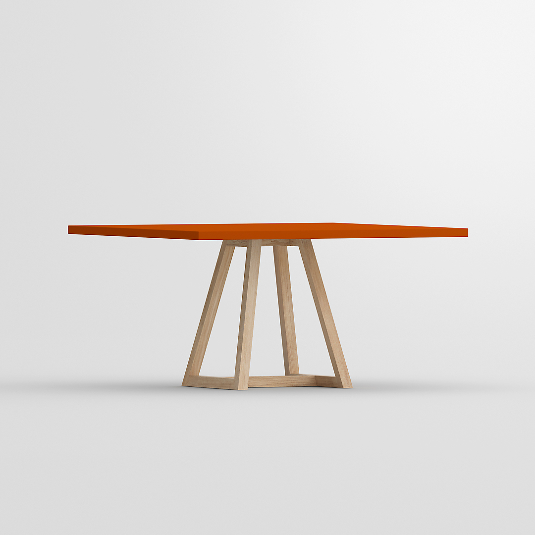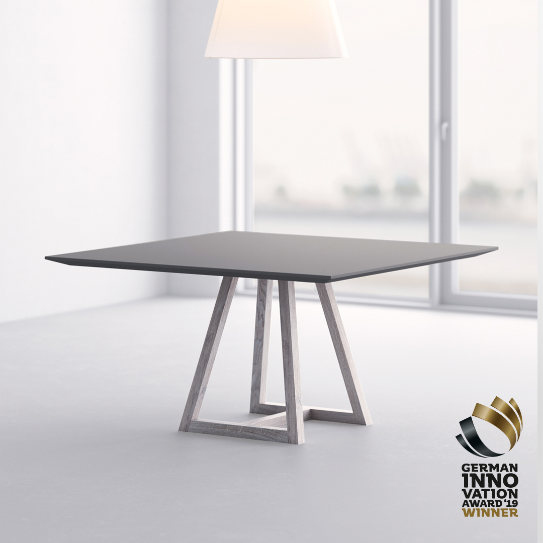 Tisch MARGO SQUARE - Pure Eleganz, Reinheit und architektonische Stärke. Auf den ersten Blick besticht die grafische Qualität der modernen Form des Tisches. Die Klarheit geprägt von der Linienführung der Konstruktionselemente. Die verschiedenen Möglichkeiten geben die freie Wahl bei der Gestaltungsmöglichkeit aus Holz und Linoleum. Das Kantenprofil kann, unabhängig ob Vollholz oder Linoleum, gerade oder abgeschrägt gewählt werden. Ob dezent oder markant alle Kombinationen sind möglich. Design: gg designart