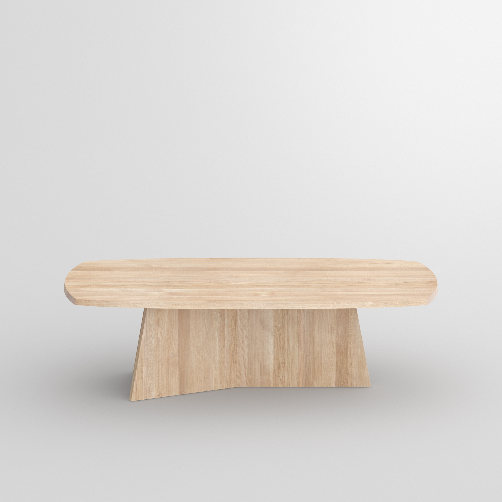 Jurybegründung des Rat für Formgebung: Der massive Fuß aus Holz sorgt für einen sicheren Stand, verleiht dem Tisch Gewicht und bewirkt eine optische Präsenz, die durch die markante Ypsilon-Form noch unterstrichen wird.