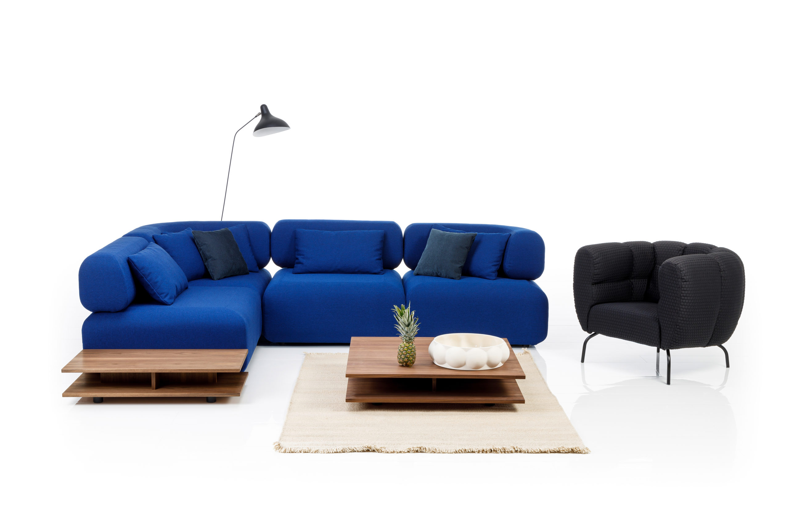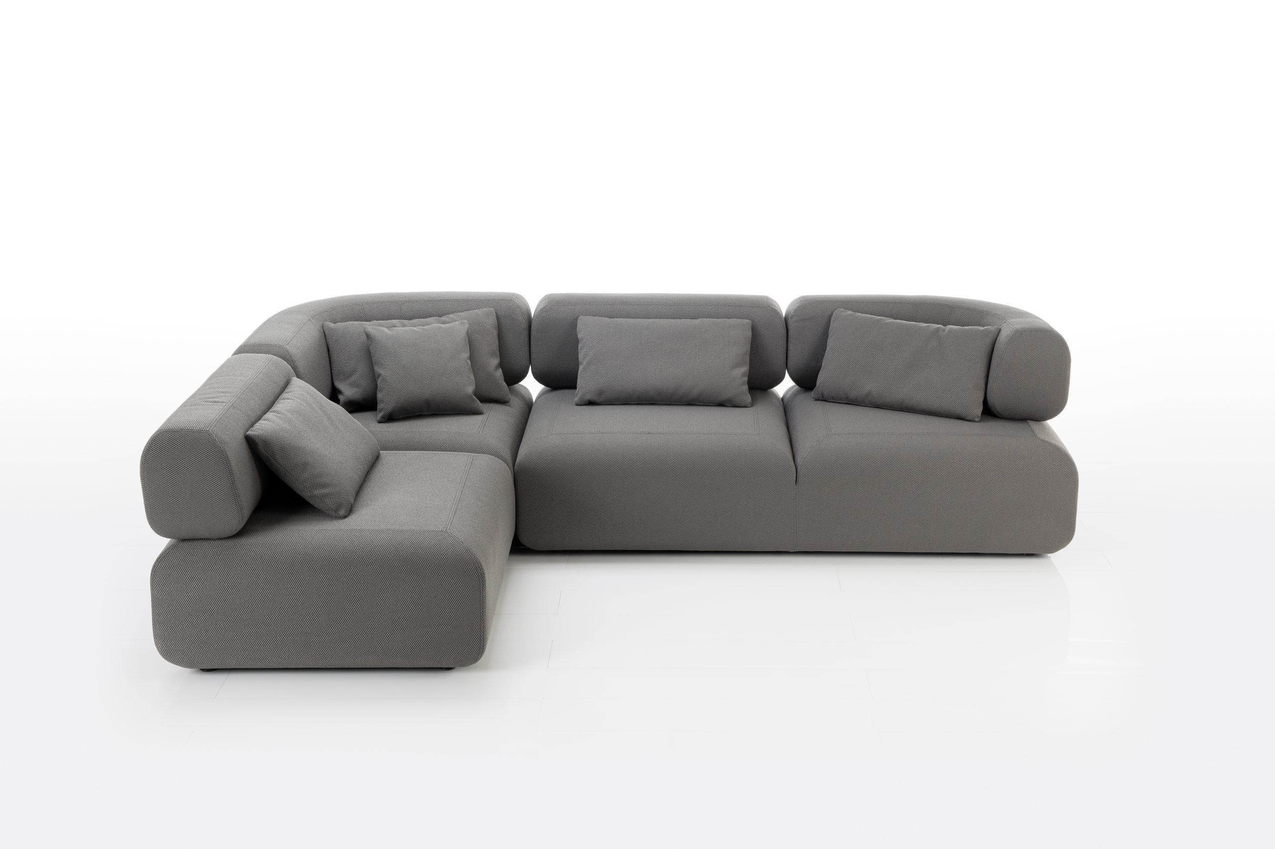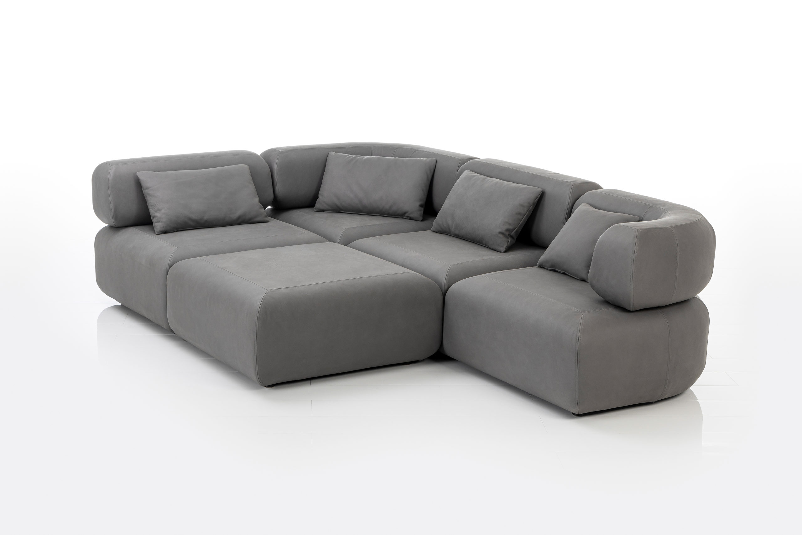 Die Sofas all together sind ausdrucksstarke, plastische Wohnelemente, in denen sich architektonische und organische Attribute verbinden. Zu nutzen als außergewöhnliche Solitäre oder beliebig zu erweitern mit Sesseln, Hockern Tischen und anderen Elementen aus dem modularen Wohnprogramm.