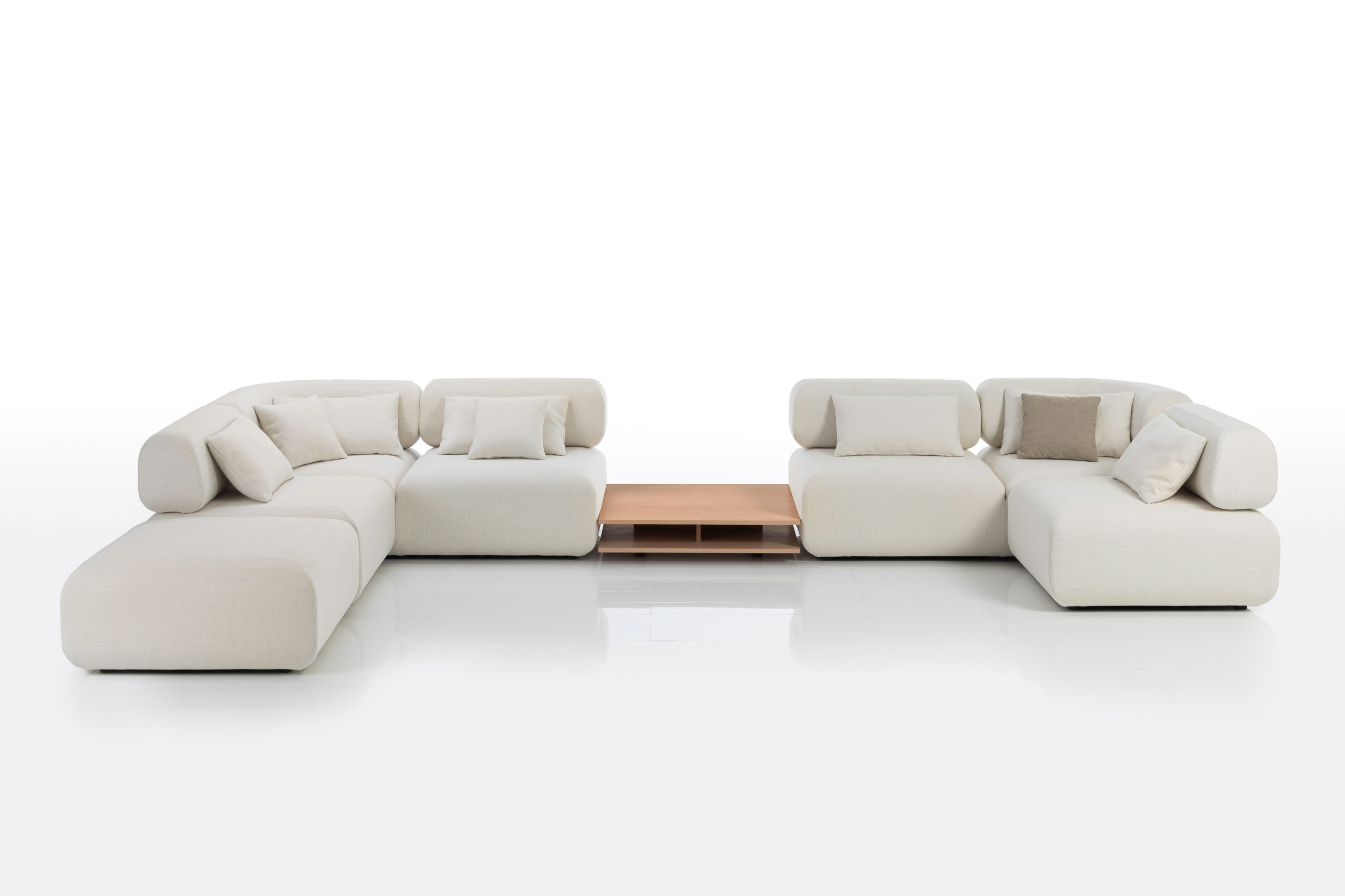 Hochwertige, langlebige Polsterschäume mit hohem Raumgewicht, kombiniert mit einem Taschenfederkern, sowie vollständig abziehbare und erneuerbare Bezüge machen all together langlebig und nachhaltig. Exzellent gearbeitete und gestaltete Nähte sind ein zusätzliches Designelement. Vollständig gepolstert und rundum bezogen, ist all together darüber hinaus komfortabel und wohnlich. Eine bodennahe Sitzbasis verstärkt den Lounge-Charakter. Die Lehnen – gebogen, verkürzt oder gerade – sind abnehmbar.