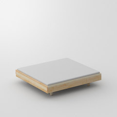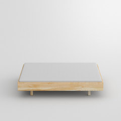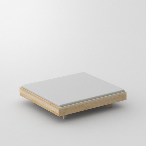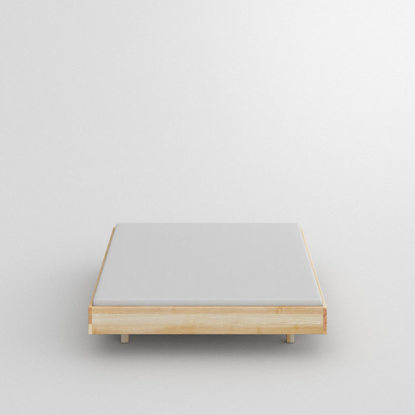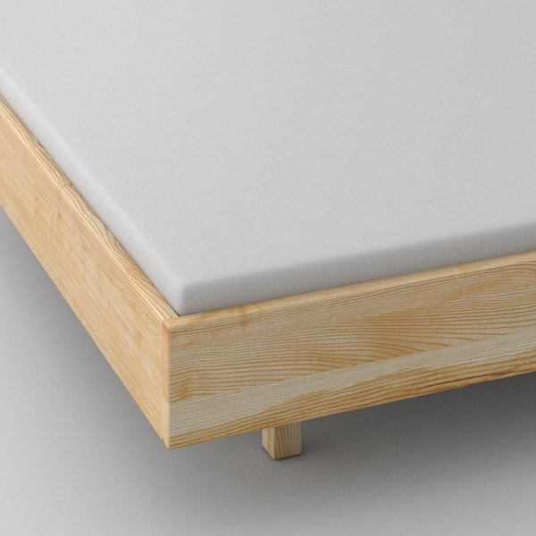 Leicht abgerundete weiche kanten. Scheinbar schwebender elegamter Bettrahmen ohne Kopfteil.