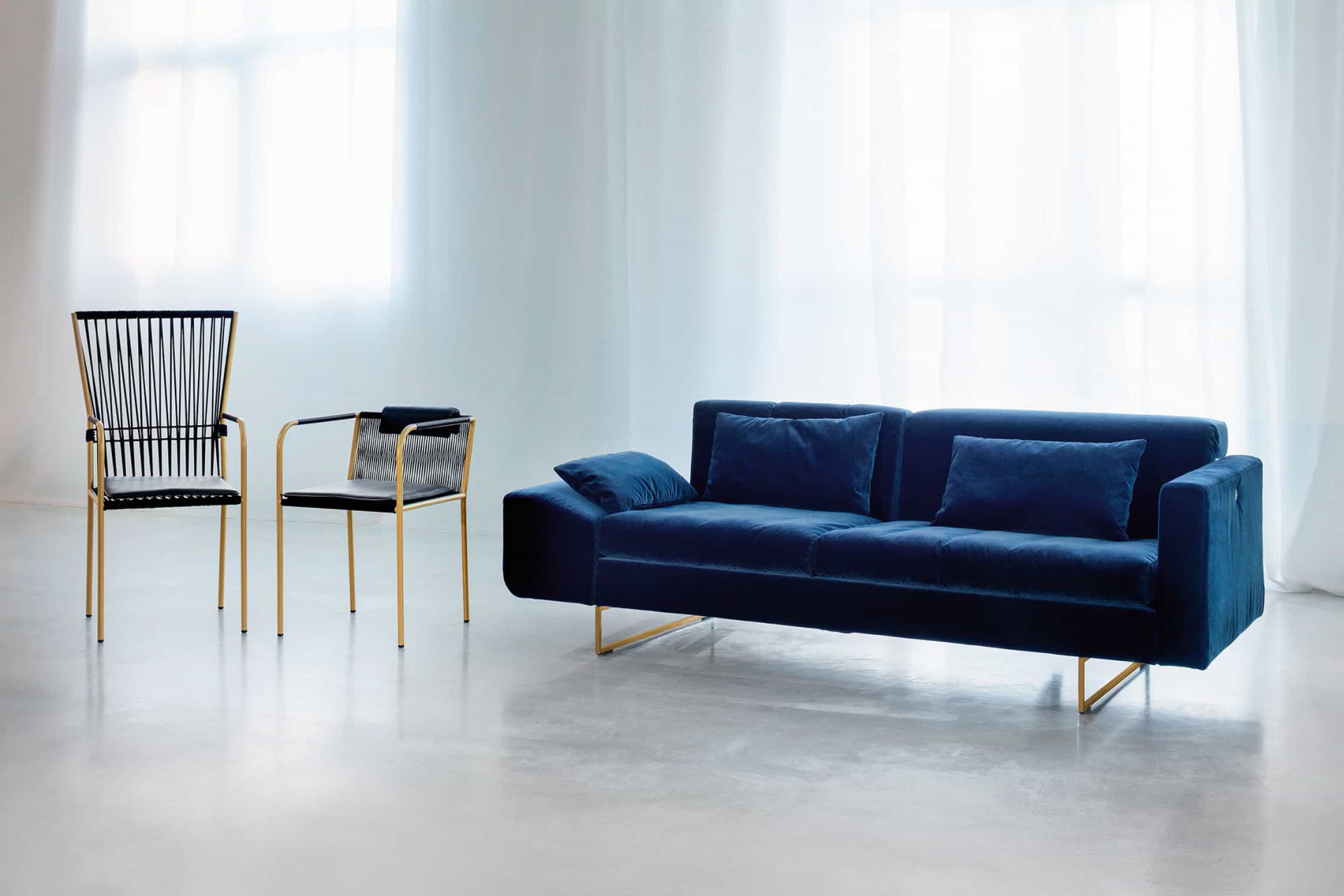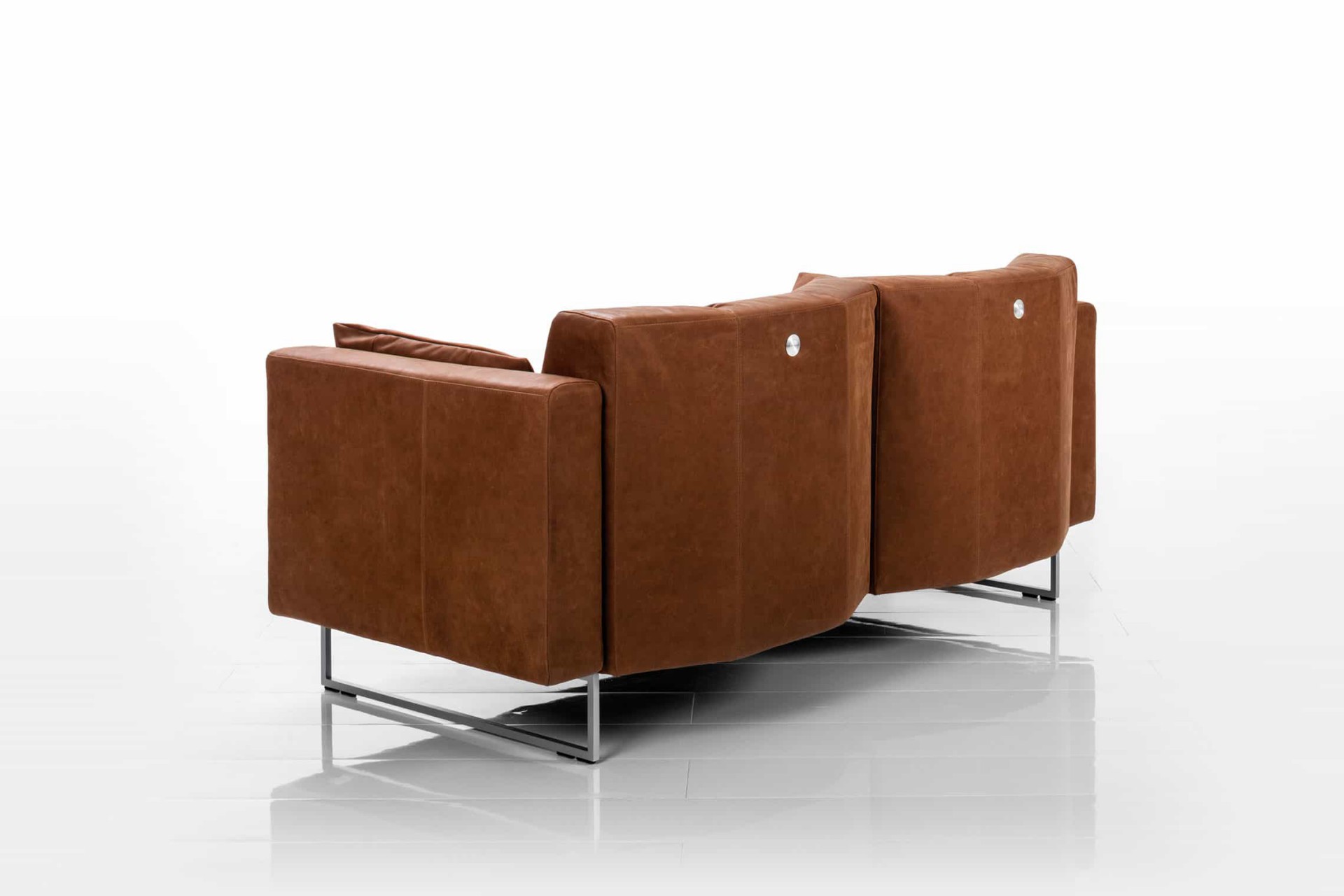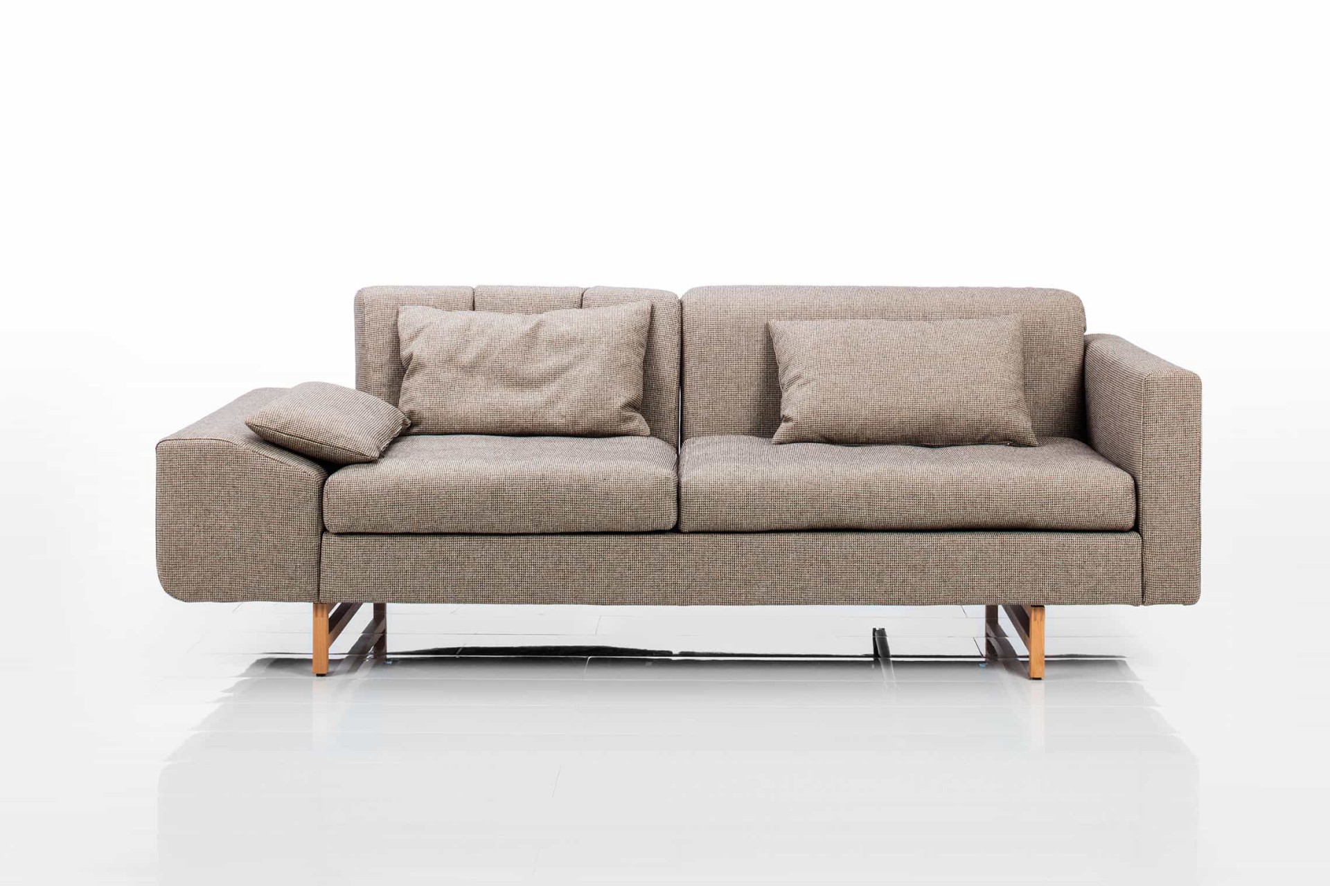 embrace ist ein cooles, kuscheliges, facettenreiches Sofa, dessen vier unterschiedliche, frei miteinander kombinierbare Varianten allesamt herausragenden – wahlweise weichen oder etwas festeren – Sitzkomfort bieten sowie Verwandlungsfunktionen auf Knopfdruck: Die gerundete Rückenlehne lässt sich um 20 cm hochfahren, die glatte Lehne kann abgesenkt und im Kopfteil stufenlos verstellt werden. Zu ergänzen durch zwei Sesselmodelle, eine Bank und zwei Hocker. Bezüge abziehbar.