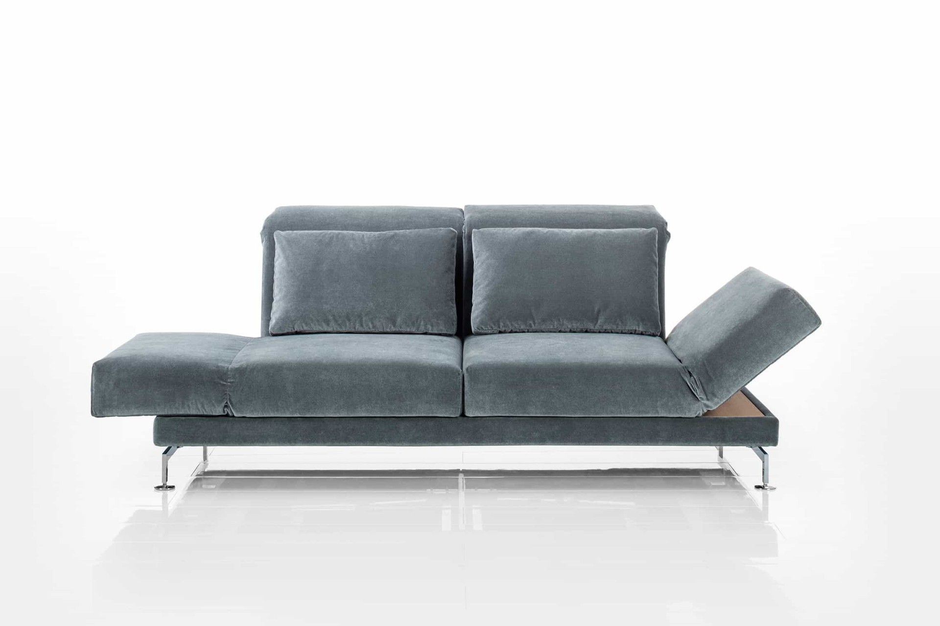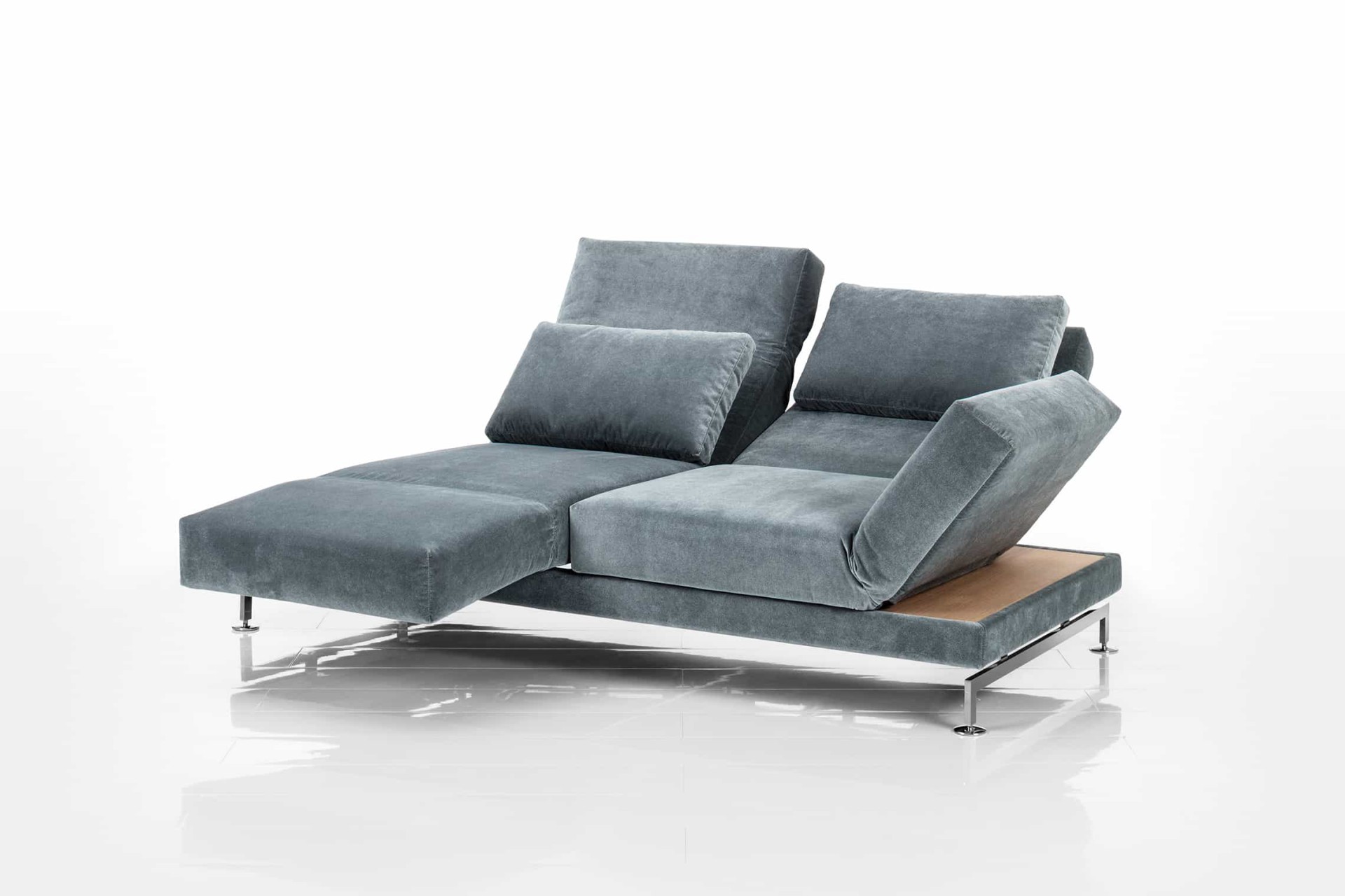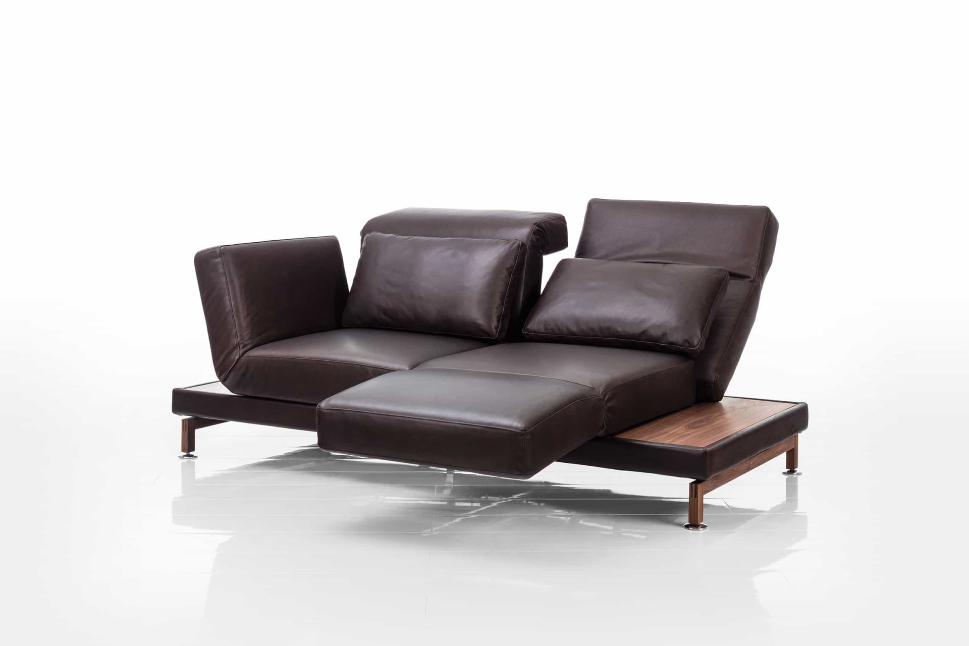 moule, das Original: Seit 2003 überzeugt das Erfolgsmodell moule mit innovativen Verwandlungsfunktionen, einer legeren und modernen Ausstrahlung, Spitzenqualität sowie luxuriösem, wandelbarem Komfort. Großzügig dimensioniert bei moule-medium oder mit kompaktem Maß bei moule-small. Separat zum Entspannen vorschwenkbare Sitze und stufenlos absenkbare Arm- und Rückenlehnen ermöglichen vielfältige Entspannungspositionen – bis hin zum bequemen Liegen.
