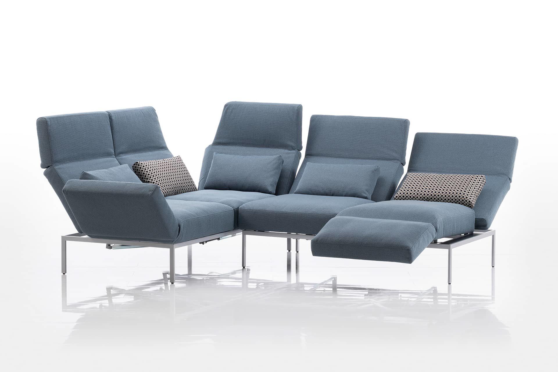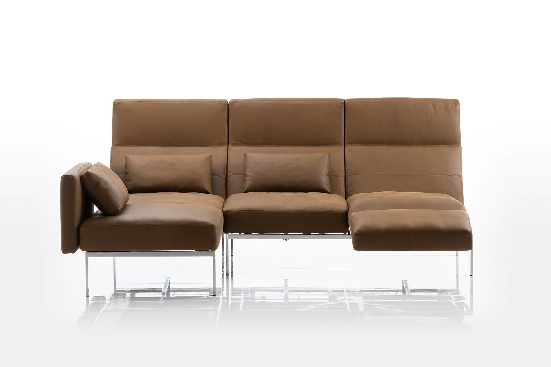 Verwandlungskomfort: Die Multifunktionsensembles von roro-medium und roro-small bieten grandiosen Sitz-, Lounge- und Liegekomfort. Bezüge jeweils in Textil oder Leder, abziehbar. Grazile Untergestelle in Chrom oder Chrom schwarz.
