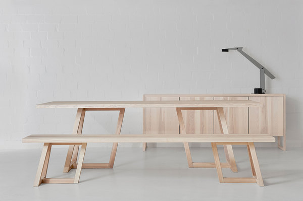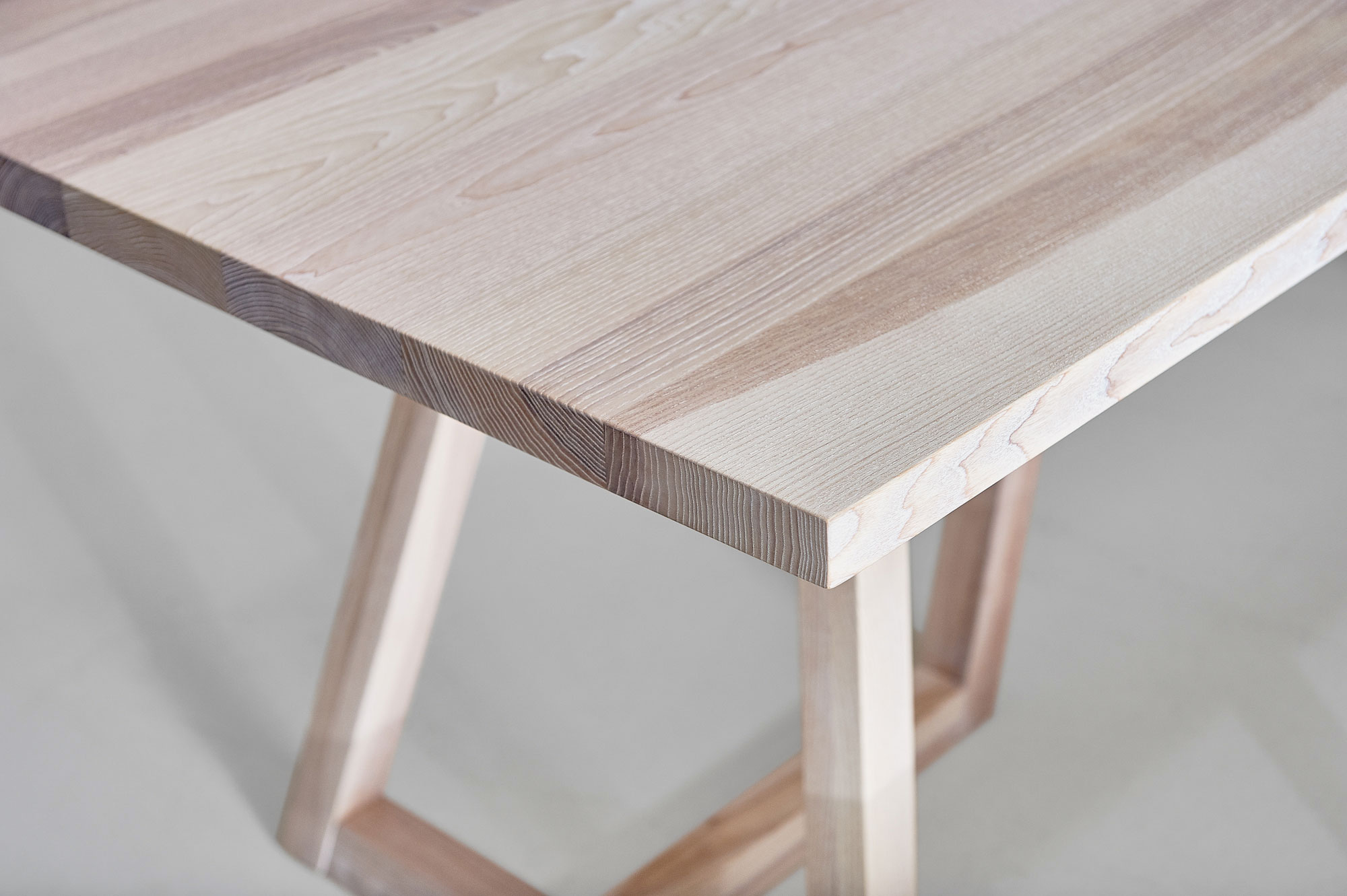 Die Klarheit geprägt von der Linienführung der Konstruktionselemente. Die schlichte, minimalistische Tischplatte aus selektierten extra breiten Lamellen vervollständigt den grafischen Ausdruck. Konfigurieren Sie Ihren Wunsch-Tisch oder lassen Sie ganz individuell nach Maß anfertigen.